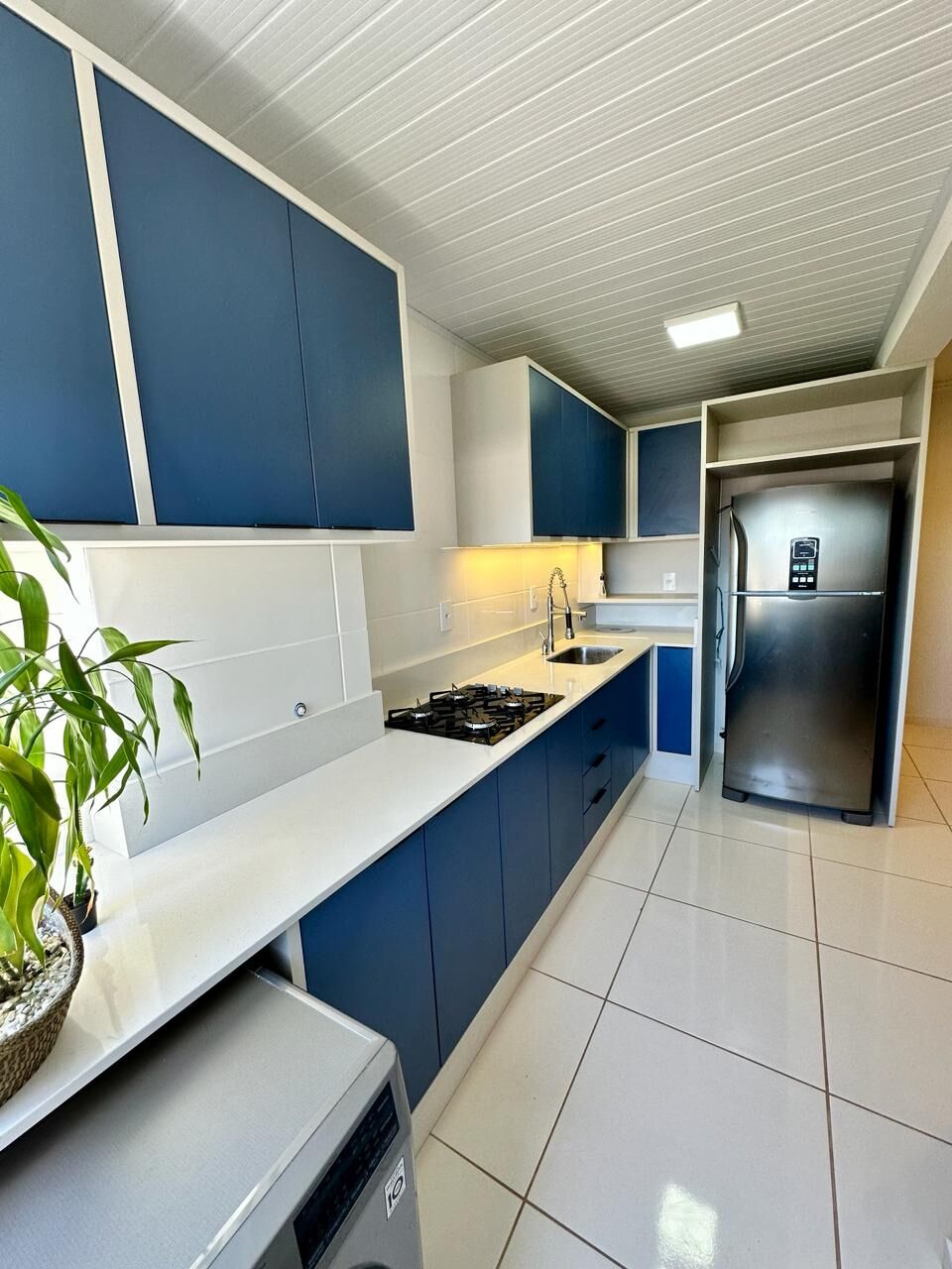 Tem geladeira, máquina Lava e Seca INOX, fogão, ar condicionado na sala e dormitório, esta prontinho para te receber.